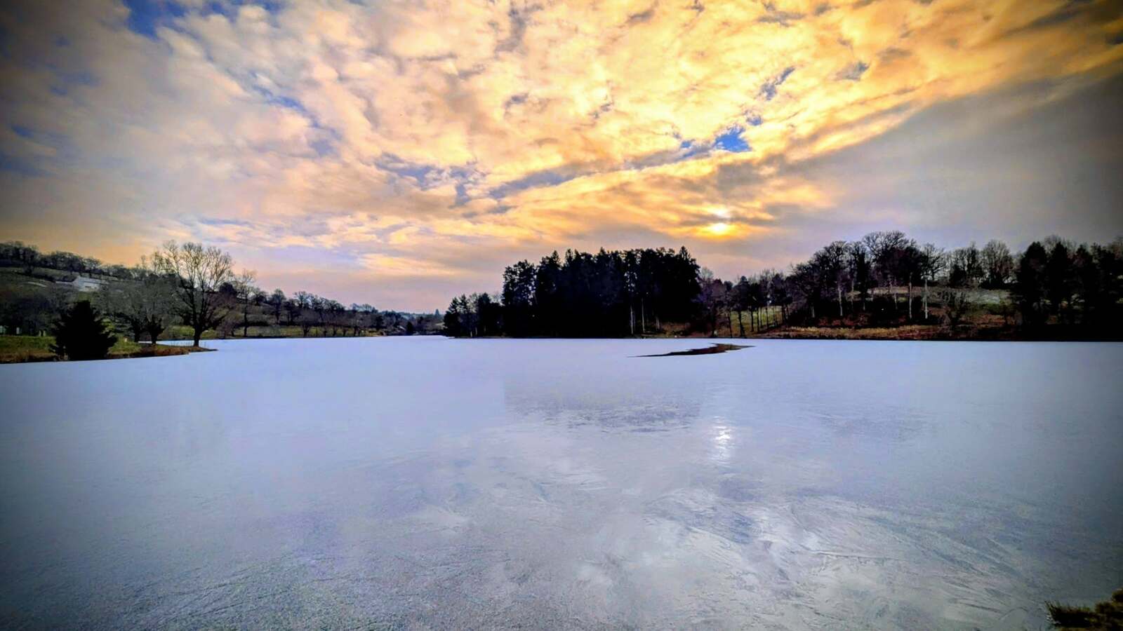 Départ ce matin du plan d’eau du Val Saint-Jean… et le décor est posé dès les premiers pas : plan d’eau entièrement gelé, silence d’hiver, atmosphère magique.