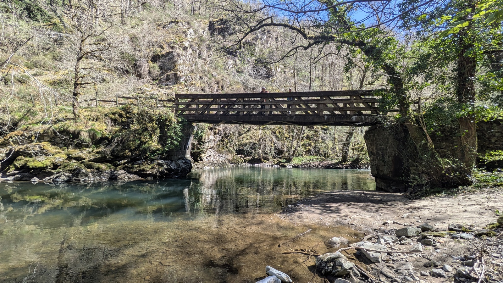 Passage par le bois d’Aubier pour atteindre la fameuse passerelle himalayenne du Pont des Dames